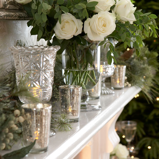 - Posate rami sempreverdi lungo il caminetto e aggiungete delle candele e degli addobbi Natalizi sulla parte superiore.